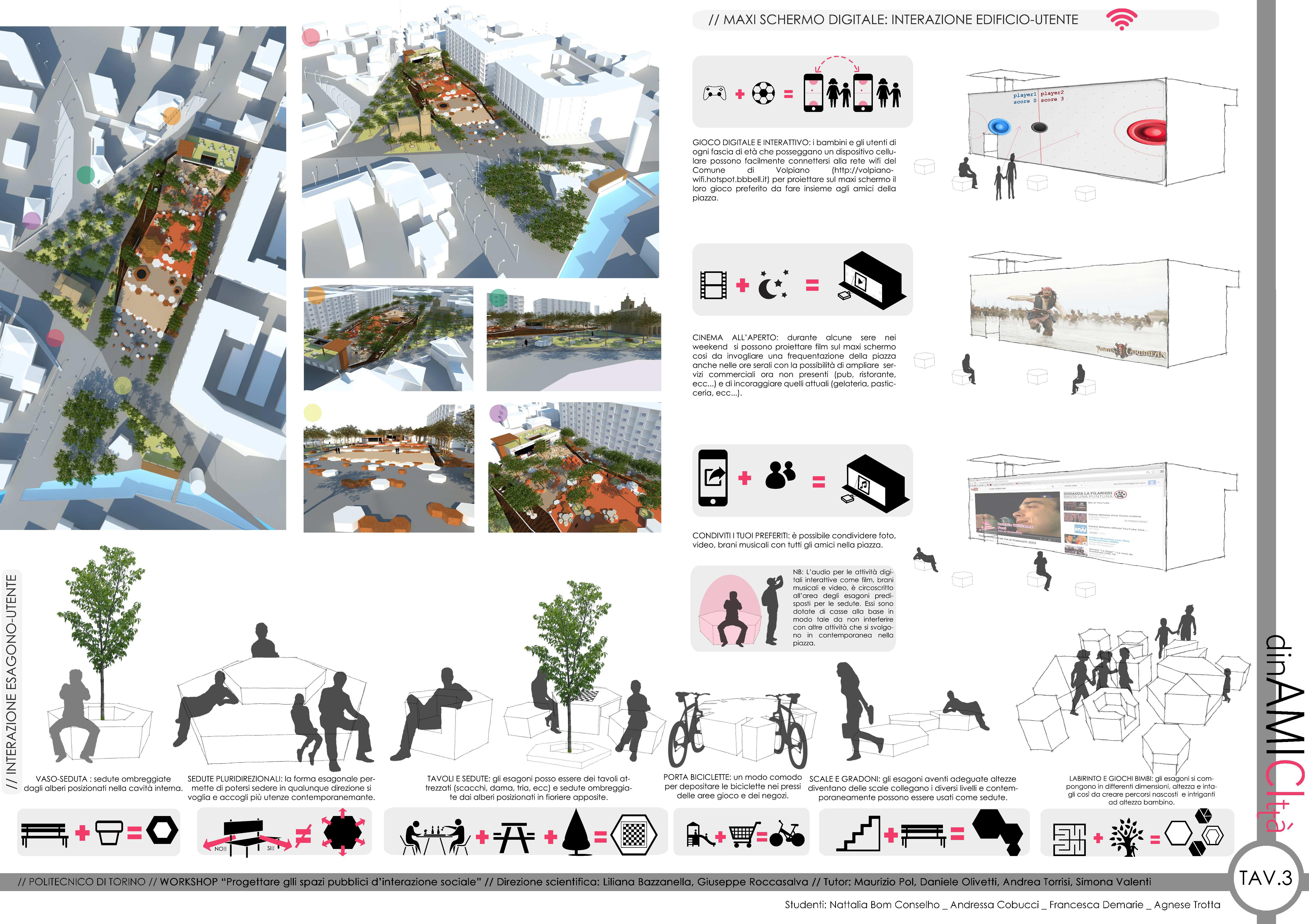 Le proposte sono state realizzate dai gruppi di lavoro diretti dalla prof.ssa Liliana Bazzanella e dall'Arch. Giuseppe Roccasalva insieme ai tutor accademici con il coordinamento del Servizio Ambiente e Territorio.