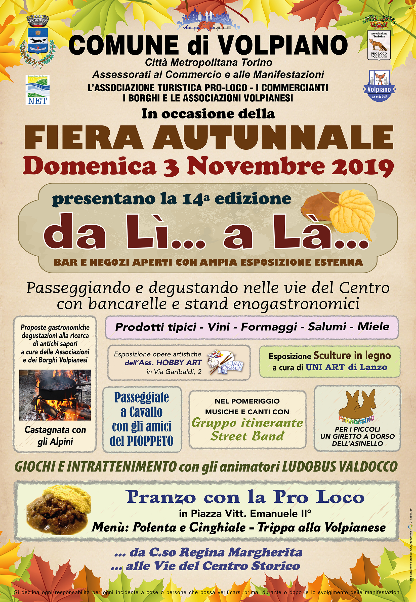 Appuntamento per DOMENICA 3 NOVEMBRE, con " DA LI' ...... A LA' " giunto alla 14^ edizione, passeggiando e degustando per il centro storico, in concomitanza con la Fiera Autunnale (C.so Regina Margherita).