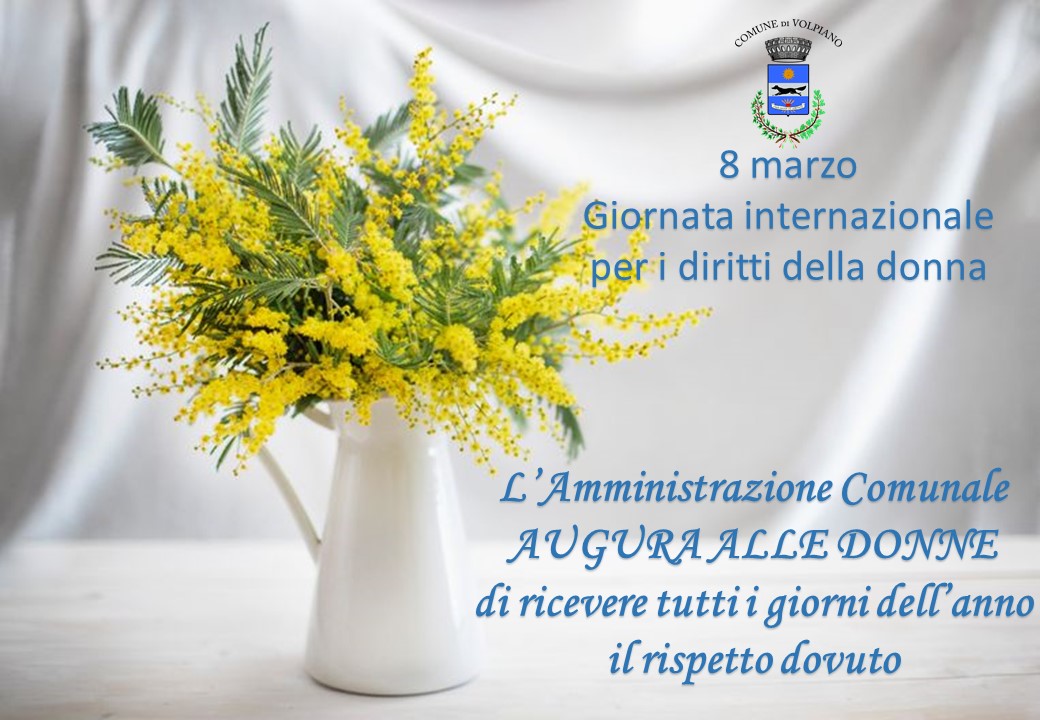 L’Amministrazione Comunale condanna ogni forma di violenza e disuguaglianza e augura a tutte le donne che possano ricevere, non solo l’8 marzo ma tutti i giorni dell’anno, il rispetto dovuto. Confidiamo che, in una società che si definisce civile, si faccia veramente un passo verso questo importante traguardo, e che la parità di genere sia presto una conquista raggiunta per tutte.
