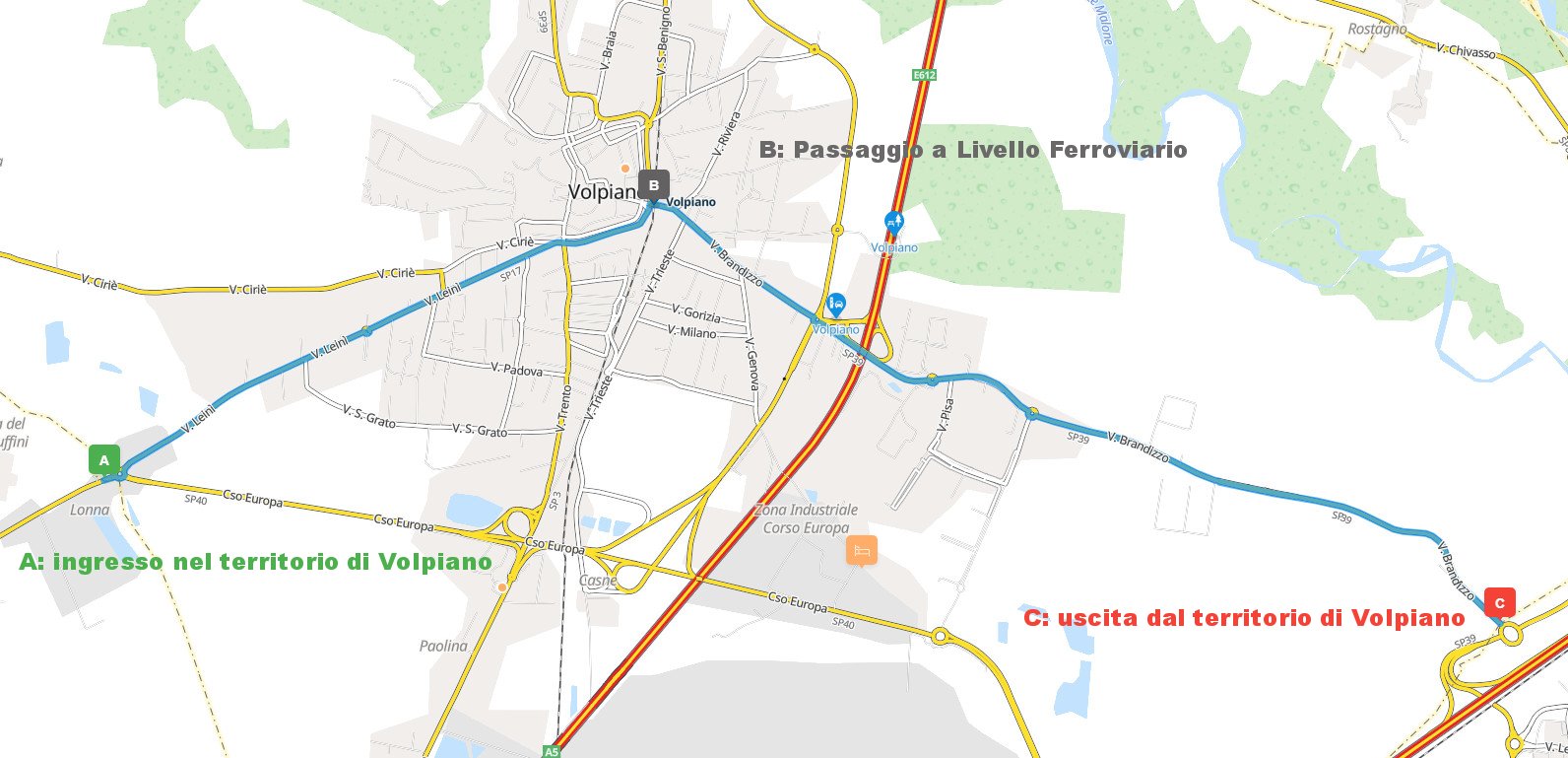 Sabato 4 maggio il Giro d’Italia transita da Volpiano, nel corso della prima tappa Venaria Reale - Torino. L’attraversamento in paese è previsto tra le 14.10 e le 14.20 con ingresso in via Leinì dalla rotatoria di corso Europa, per proseguire su corso Regina Margherita fino al passaggio a livello della stazione ferroviaria, attraversare i binari e percorrere tutta via Brandizzo; il percorso di gara è interdetto al traffico due ore e mezza prima dell’ora prevista per il passaggio dei corridori e perciò viene predisposta una viabilità alternativa.