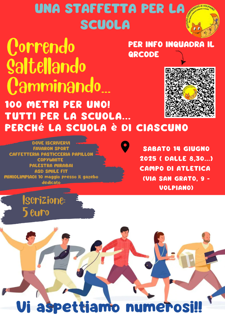 Durante la staffetta (in cui ciascuno percorrerà il proprio ‘pezzettino’ come può e come crede), ci “passeremo il testimone”, dove il testimone è veramente il segno tangibile della risposta che un intero territorio dà per dimostrare che la scuola è di tutti
