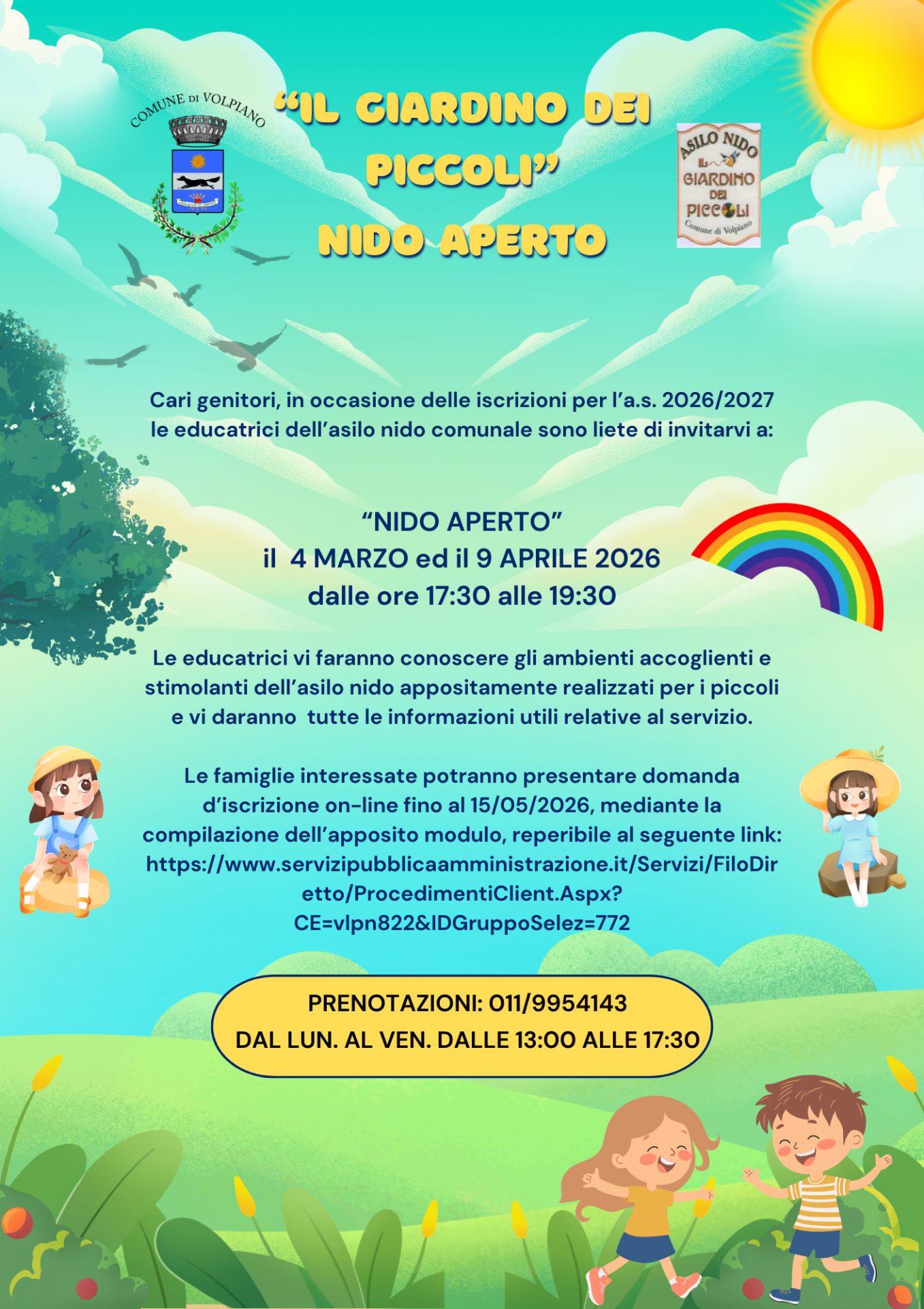 In occasione delle iscrizioni per l’a.s. 2026/2027 le educatrici dell’asilo nido comunale sono liete di invitarvi a: