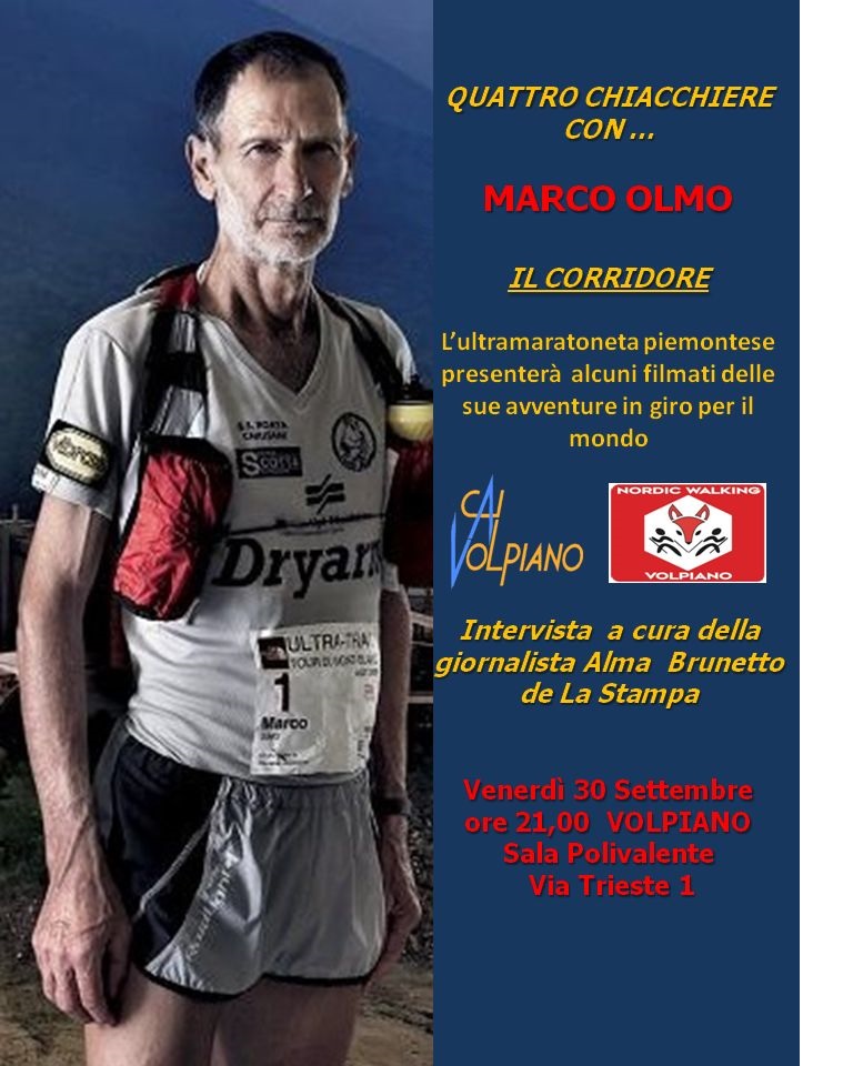Si potranno fare domande all'atleta, la sera del 30 settembre 2016 presso la Sala Polivalente di via Trieste, 1 dalle ore 21,00.