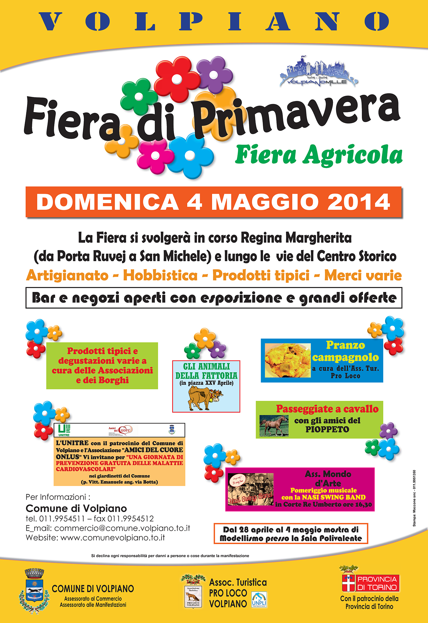 L'appuntamento quest'anno è per DOMENICA 4 MAGGIO con la Fiera commerciale in Corso Regina Margherita e la cosiddetta Fiera Agricola che si snoda lungo le vie del Centro Storico con ampia esposizione di prodotti tipici di Campagna Amica, piante, fiori ecc. ; Artigianato e Hobbistica,