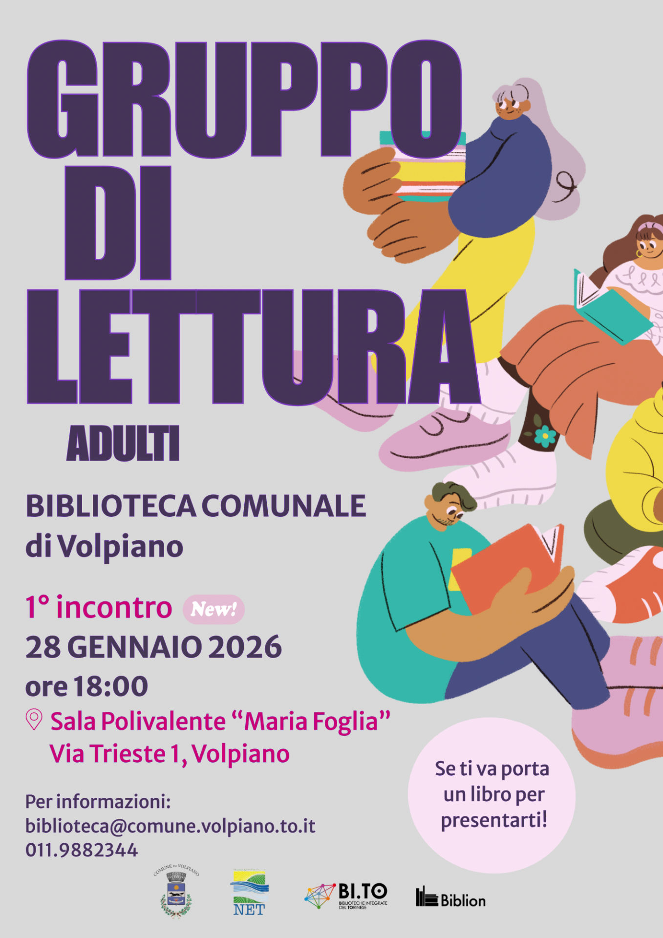 L’iniziativa rientra nel programma delle attività culturali promosse dalla Biblioteca Comunale di Volpiano, in collaborazione con il sistema bibliotecario, e si propone di rafforzare il ruolo della biblioteca come luogo di aggregazione culturale e di crescita collettiva.