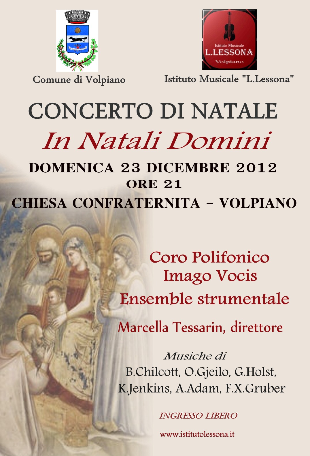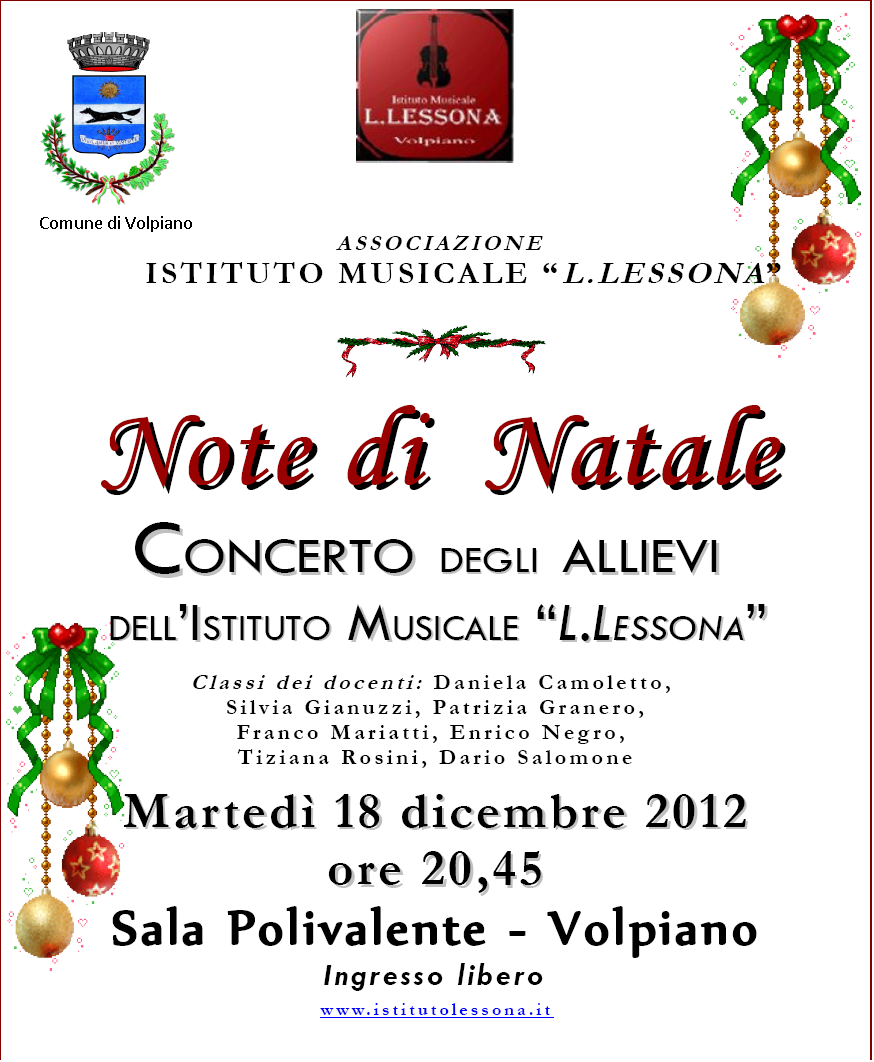 In occasione delle feste Natalizie 2012, L'Istituto Musicale Lessona di Volpiano in collaborazione con il Comune di Volpiano, organizza due Concerti di Natale.