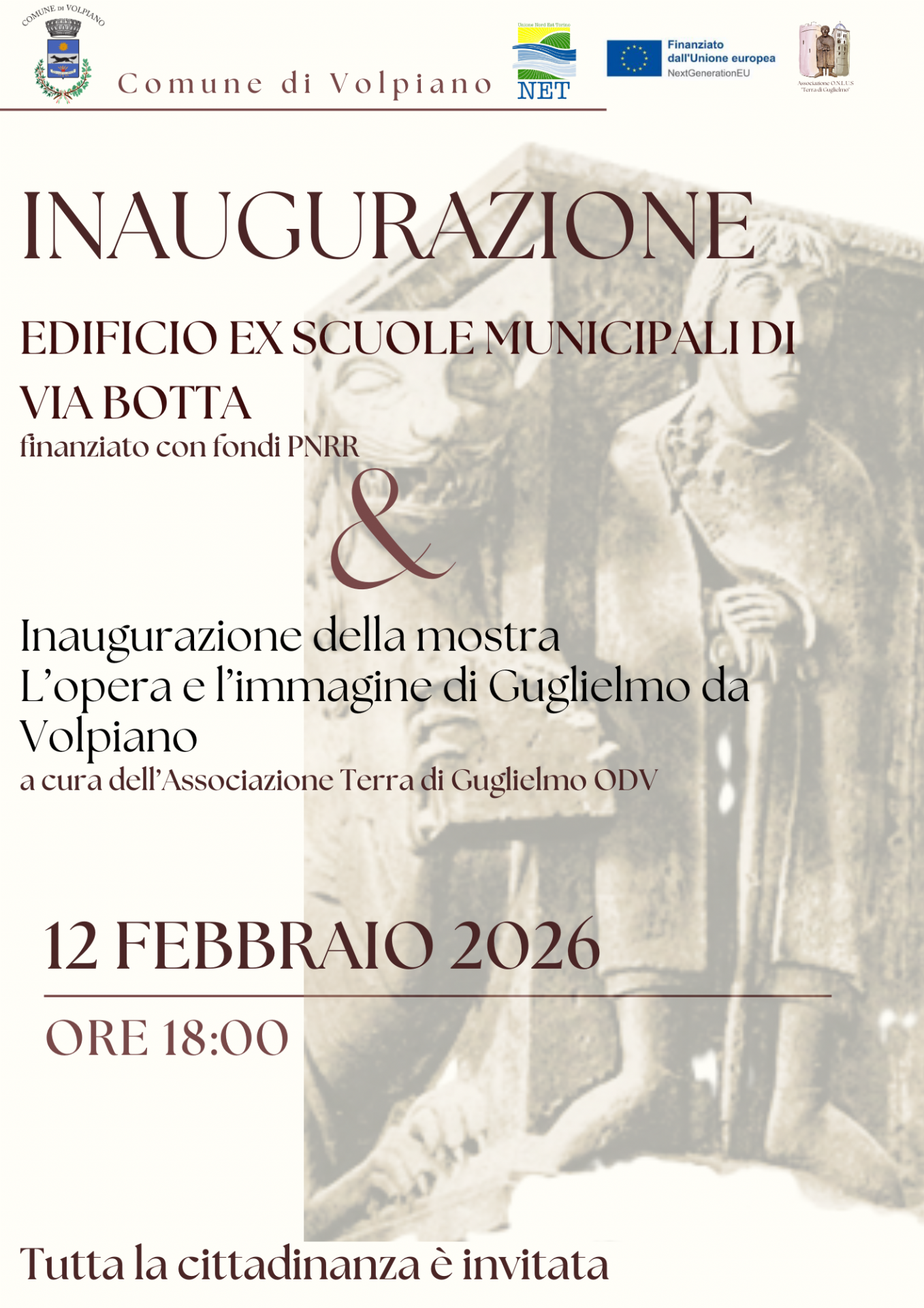 In occasione dell’apertura, sarà inaugurata la mostra “L’opera e l’immagine di Guglielmo da Volpiano”, a cura dell’Associazione Terra di Guglielmo ODV, un percorso espositivo che valorizza la figura storica di Guglielmo da Volpiano e il legame con il territorio.