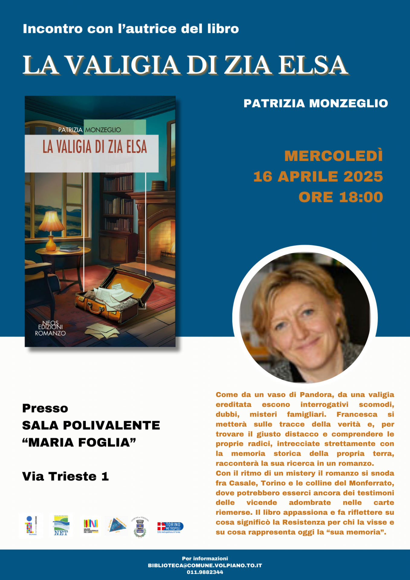 L'autore Patrizia Monzeglio presenterà "La valigia di zia Elsa".