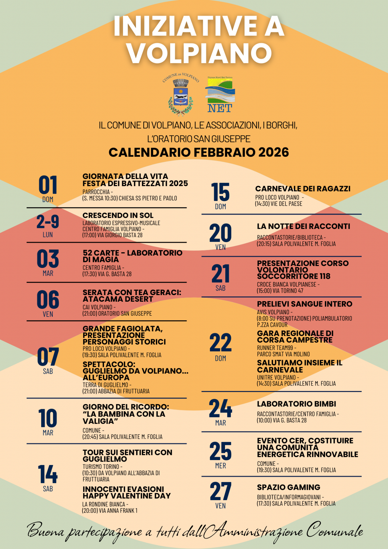 Tutti gli appuntamenti e le iniziative per il mese di febbraio 2026