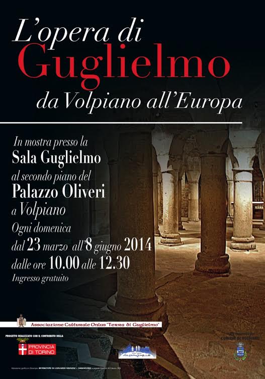 All'interno delle celebrazioni per il millennio di Volpiano, l'Associazione Terra di Guglielmo, organizza la mostra permanente "L'OPERA DI GUGLIELMO: DA VOLPIANO ALL'EUROPA ", presso Palazzo Oliveri - 2° piano - sala Guglielmo in Vicolo Fourat 2.