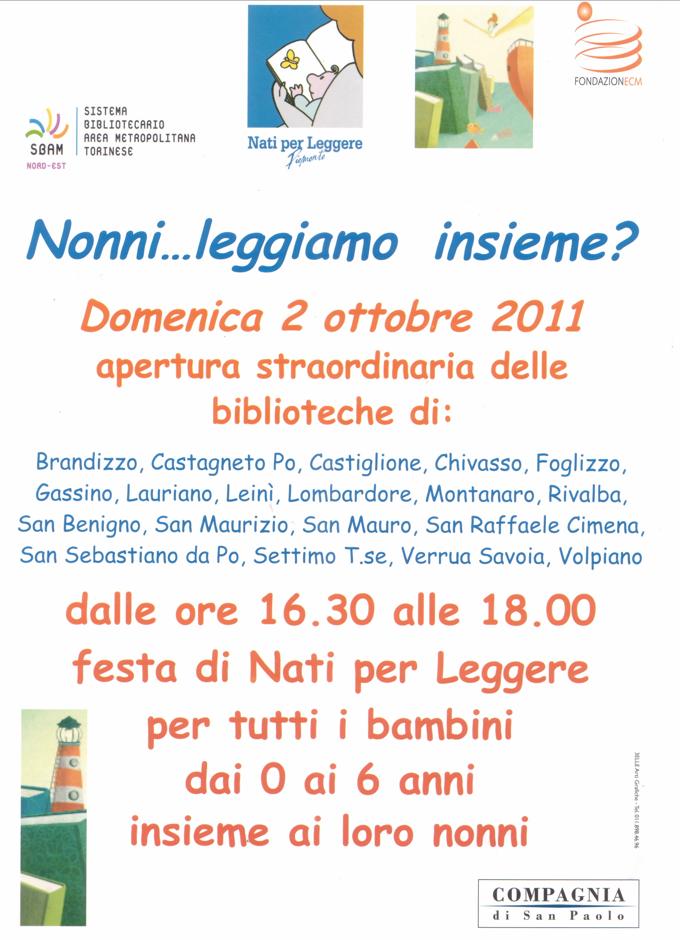 Domenica 2 ottobre 2011 le biblioteche dell'area mertropolitana Nord Est nell'ambito del progetto "Nati per leggere"saranno aperte dalle ore 16.30 alle 18.00.