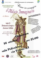 andranno in scena gli attori della compagnia teatrale Orme in viaggio con la presentazione dell' opera teatrale di Molière:il Malato Immaginario messa in scena a cura di P. Congiu e A. Villella