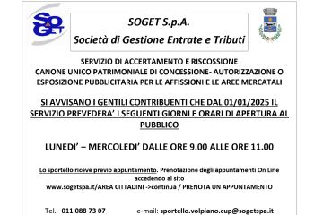 Leggi tuttoVariazione orari sportello SO.G.E.T. S.p.A. dal 01/01/2025