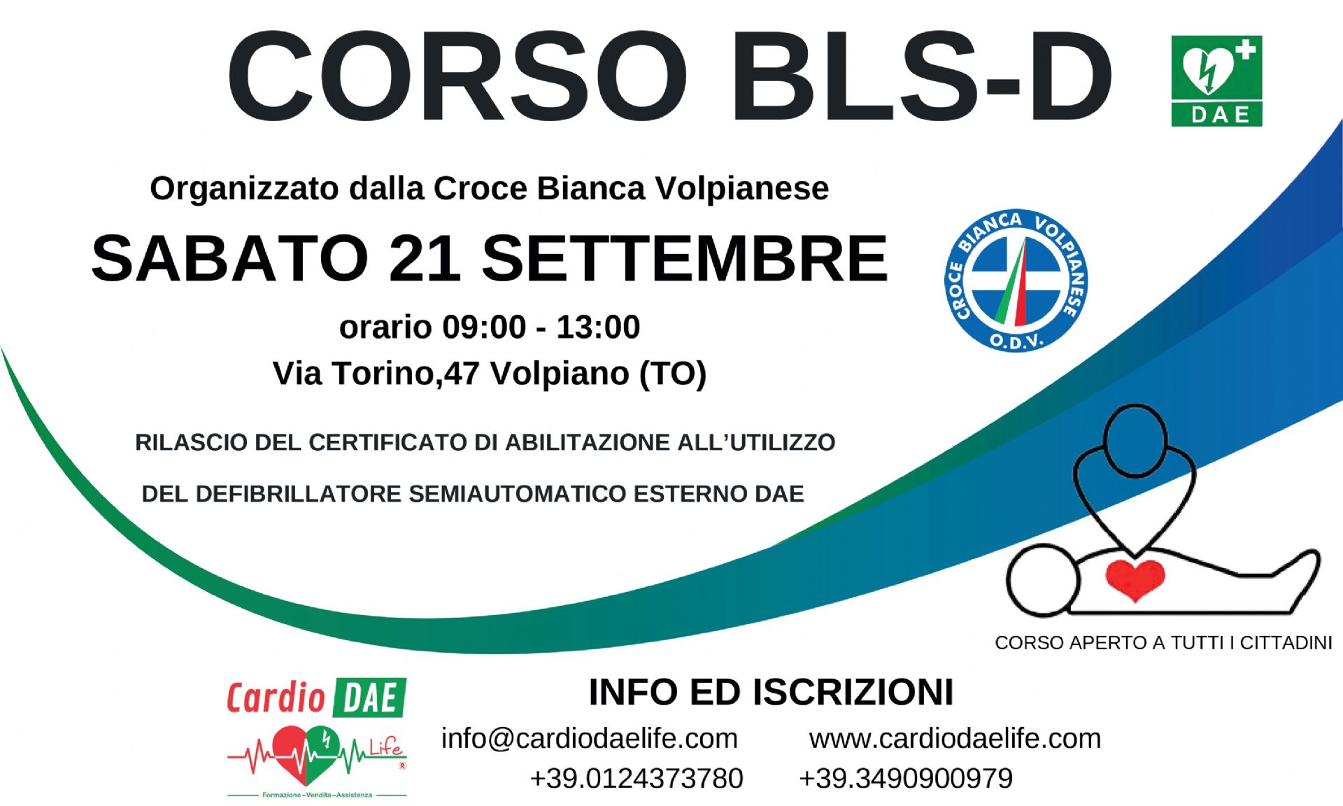 Si avvisa la cittadinanza che sabato 21 settembre 2024 la Croce Bianca Volpianese terrà il CORSO BLS-D per l'utilizzo del defibrillatore semiautomatico esterno DAE