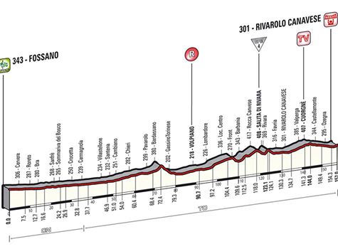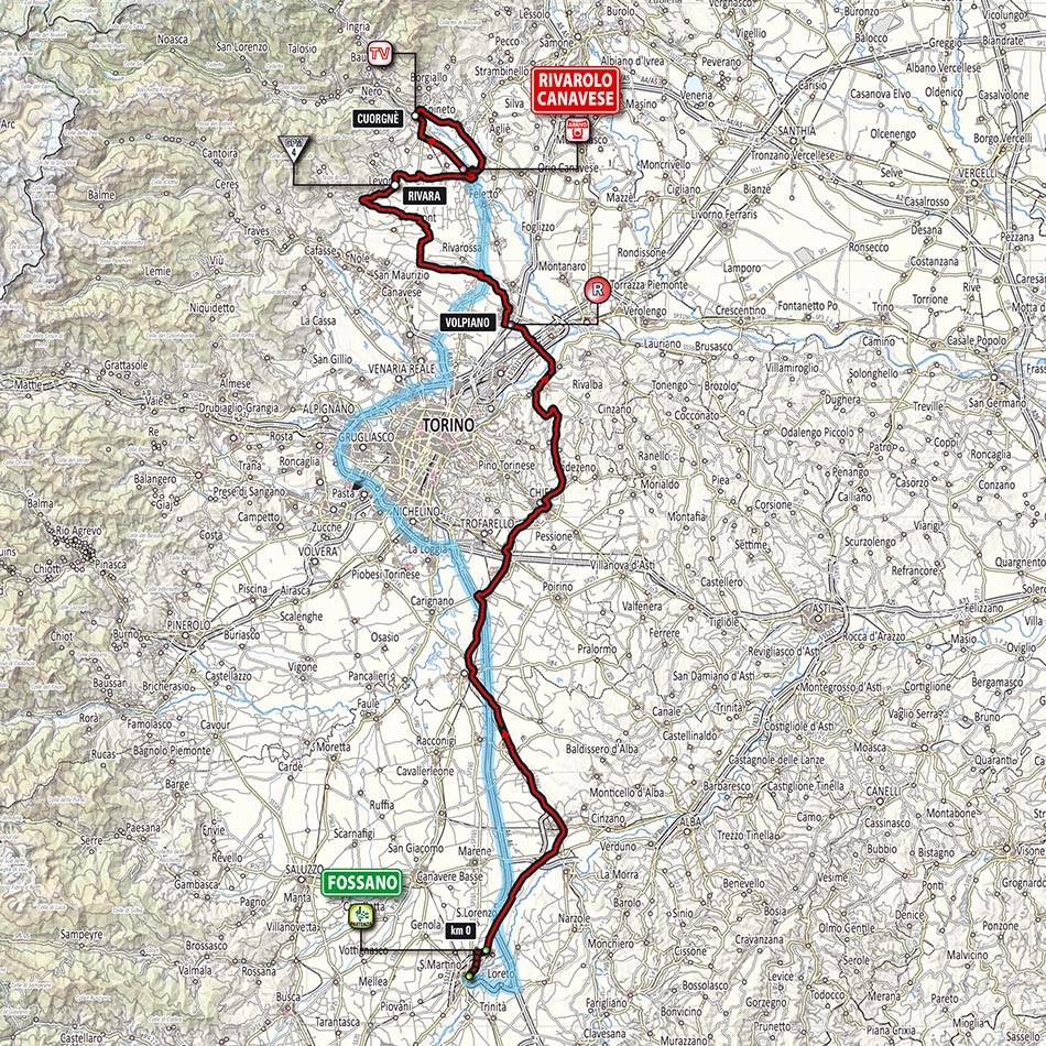 Il Giro entrerà nel territorio di Volpiano nello svincolo Volpiano Sud sull'A4, percorrerà la SP500 fino allo svincolo di via Trento, poi proseguirà, come due anni fa', fino al Ruvej e poi Corso Regina Margherita, piazza San Michele, Corso Giovanni Arnaud e infine via Lombardore.