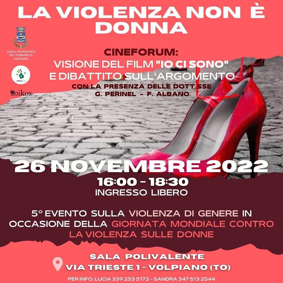 Sabato 26 novembre dalle 16 alle 18.30, in occasione della Giornata internazionale per l’eliminazione della violenza contro le donne, nella Sala polivalente di Volpiano (via Trieste 1), viene proiettato il film «Io ci sono» che racconta la storia di Lucia Annibali, donna aggredita con l’acido solforico, seguito dal dibattito condotto da Giada Perinel, psicologa, e Federica Albano, educatrice; ingresso libero, evento inserito nel ciclo di incontri «La violenza non è donna» organizzato dall’associazione Arce con il patrocinio del Comune di Volpiano.