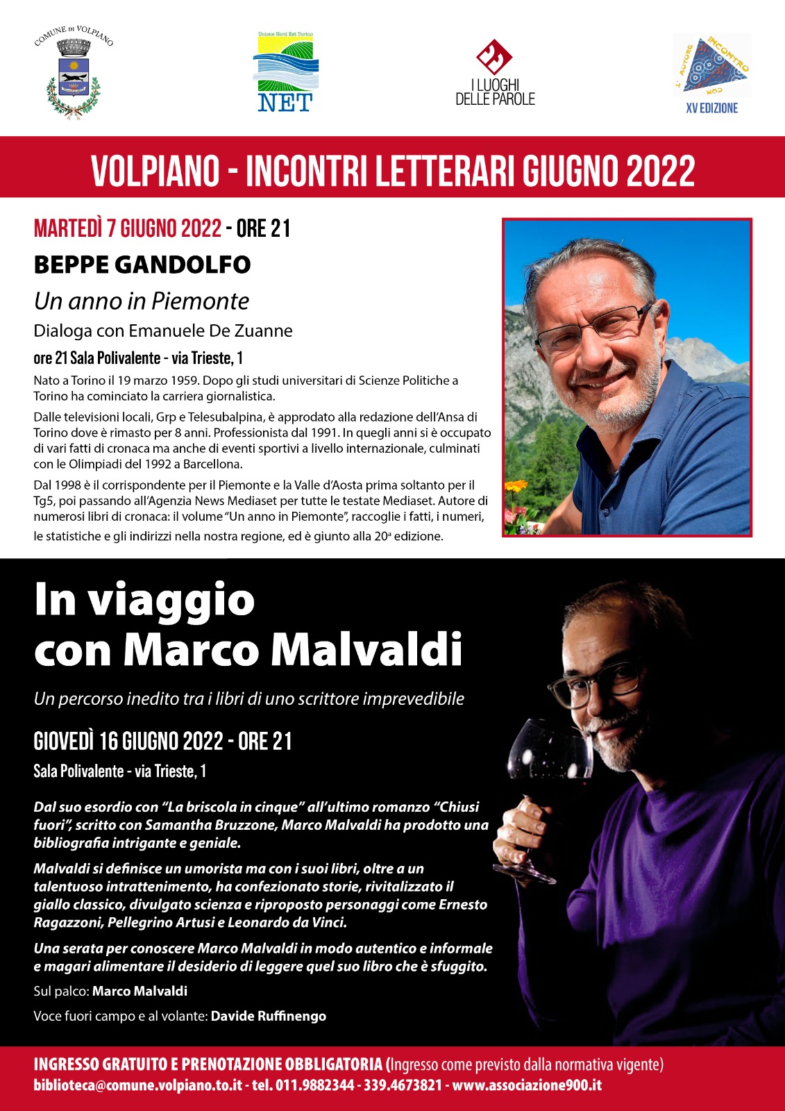 Martedì 7 giugno alle 21, nella Sala polivalente di Volpiano (via Trieste 1), Beppe Gandolfo presenta il suo libro «Un anno in Piemonte - 2021» (Enneci Communication), in dialogo con Emanuele De Zuanne.