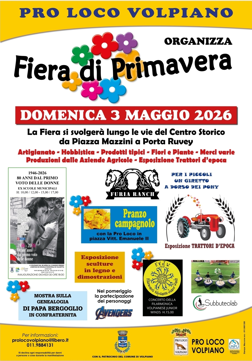 Domenica 3 maggio 2026 il centro storico si anima e si colora con la tradizionale Fiera di Primavera, organizzata dalla Pro Loco: una giornata all’insegna della convivialità, dello shopping e delle tradizioni.
