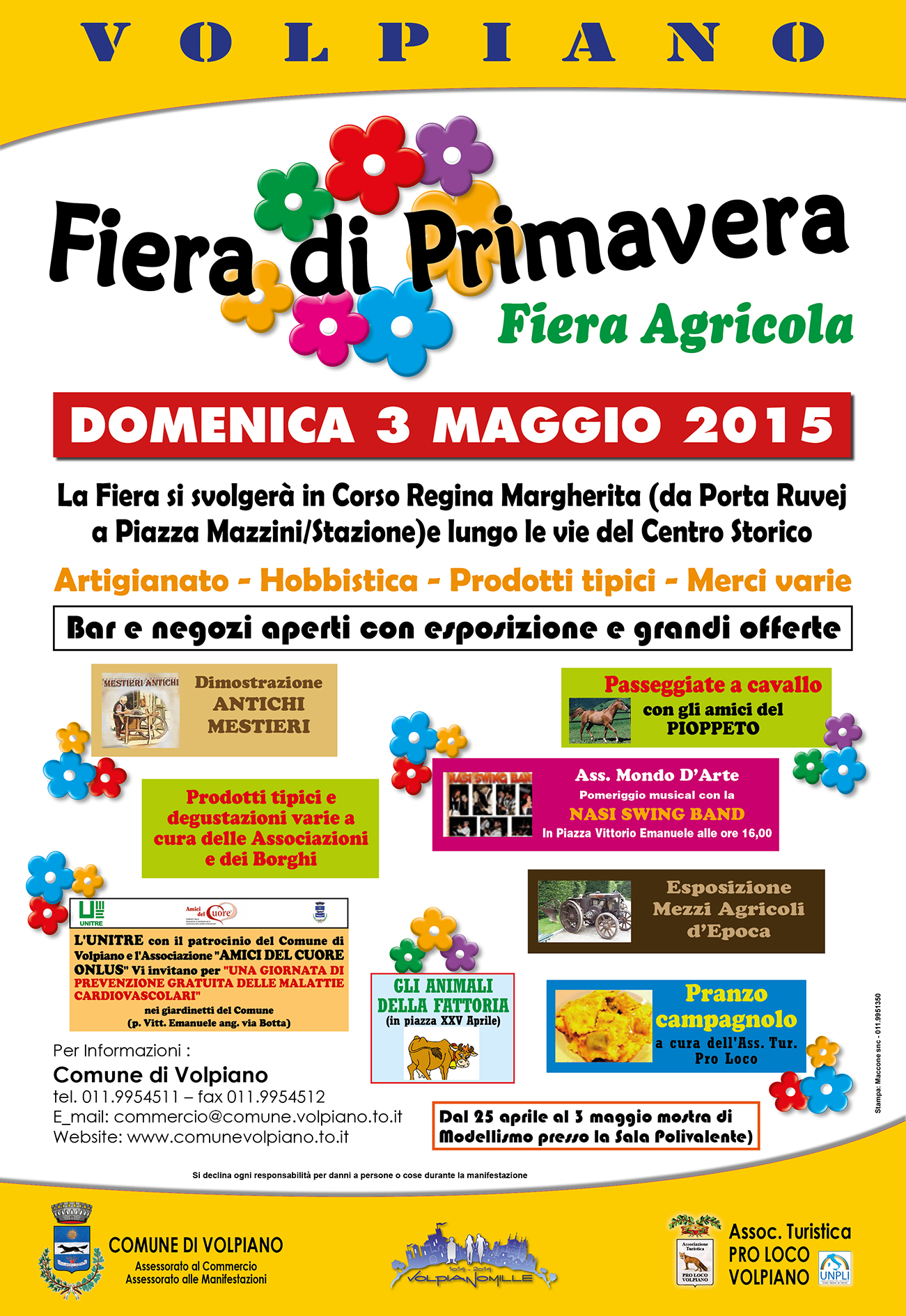 L'appuntamento quest'anno è per DOMENICA 3 MAGGIO con la Fiera commerciale in Corso Regina Margherita e la cosiddetta Fiera Agricola che si snoda lungo le vie del Centro Storico con ampia esposizione di prodotti tipici del territorio, fiori e piante, artigianato e hobbistica. ,