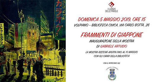 Le suggestioni del Giappone raccontate attraverso le illustrazioni e i dipinti di Gabriele Artusio saranno in mostra presso la Biblioteca Comunale - Via Carlo Botta, 26 dal 5 al 10 maggio 2019.