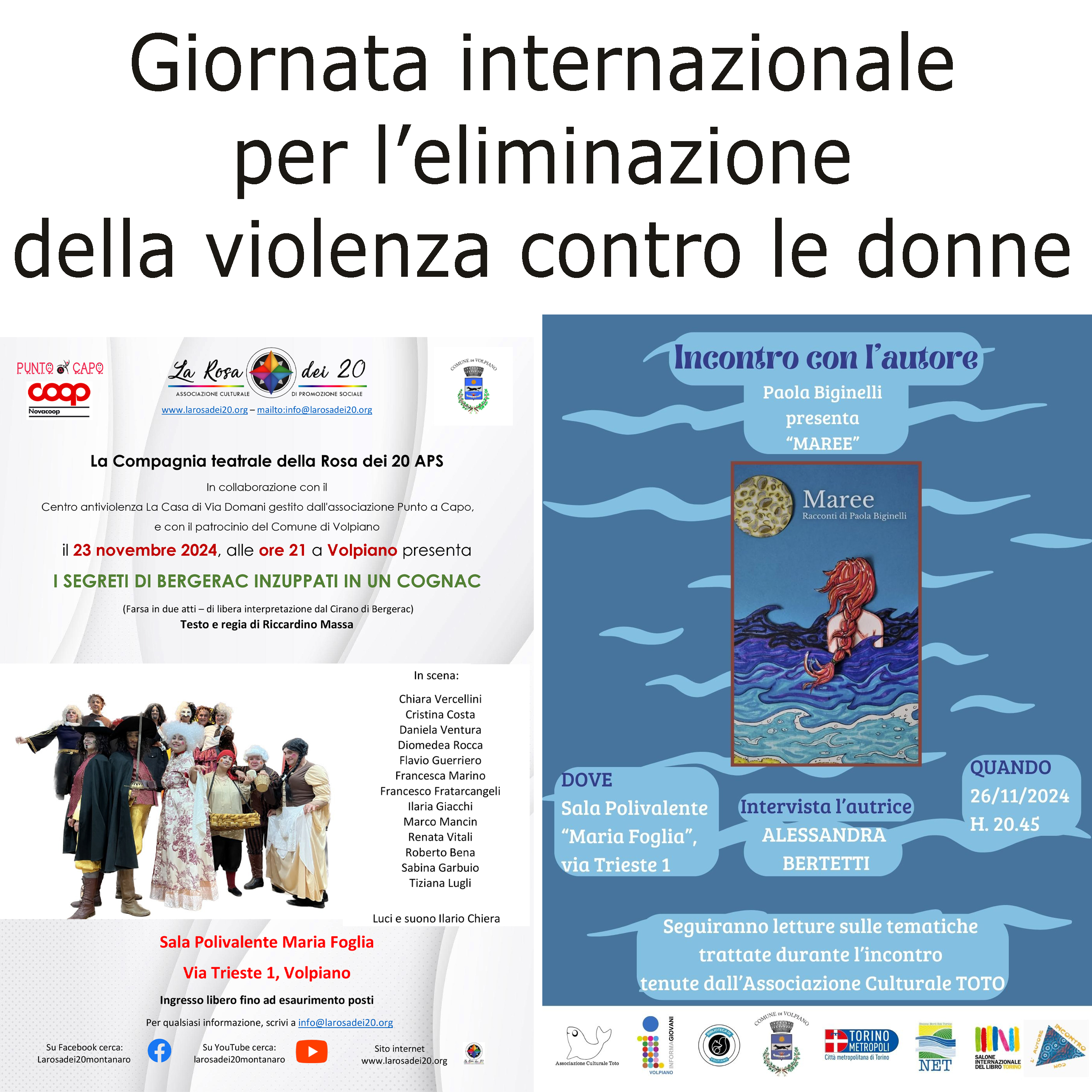 In occasione della Giornata per l’eliminazione della violenza contro le donne, il Comune di Volpiano propone due appuntamenti nella sala polivalente «Maria Foglia» (via Trieste 1):