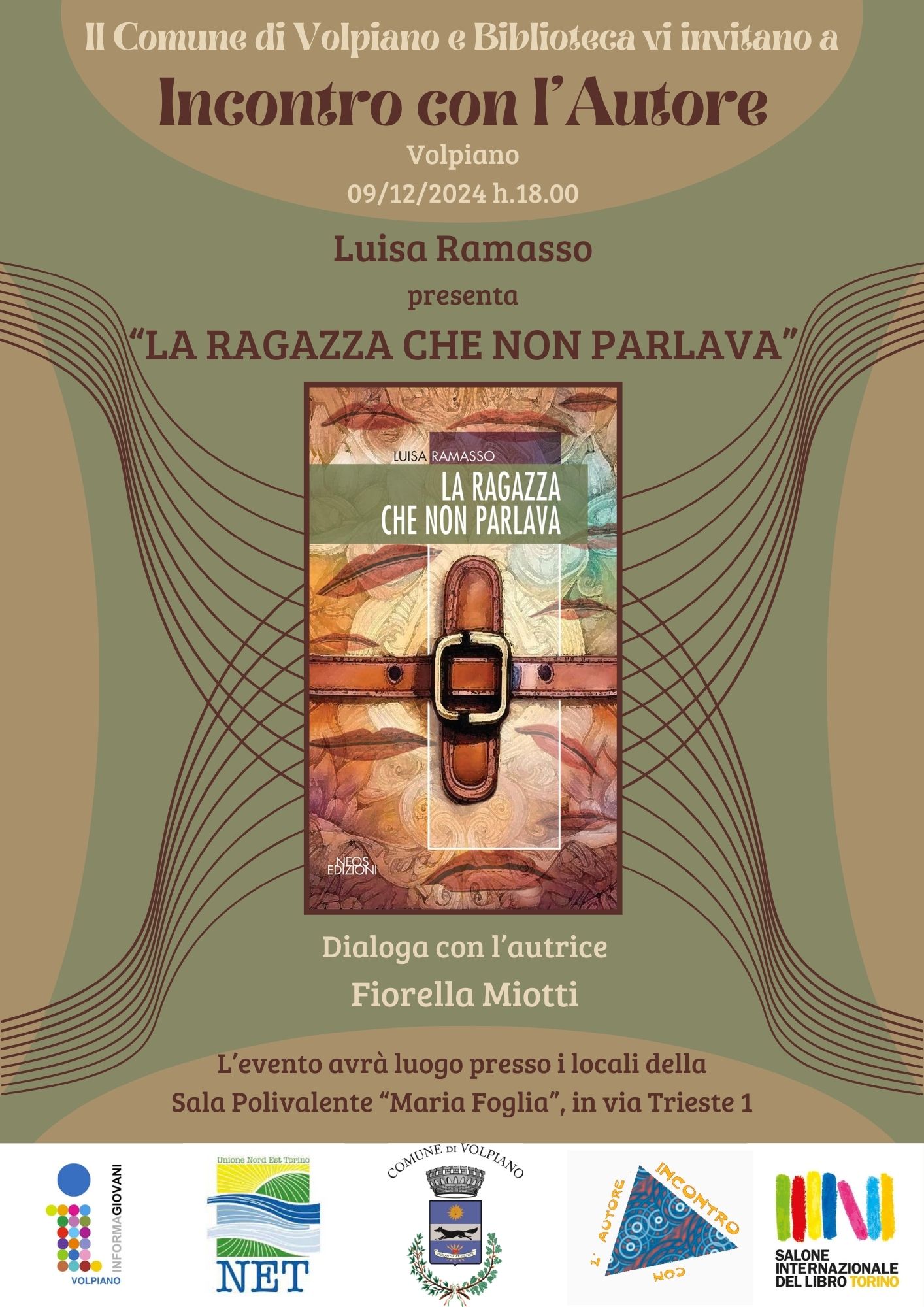- ore 18:00 Incontro con l'autrice Luisa Ramasso che presenterà il suo libro La ragazza che non parlava, introduce Fiorella Miotto.