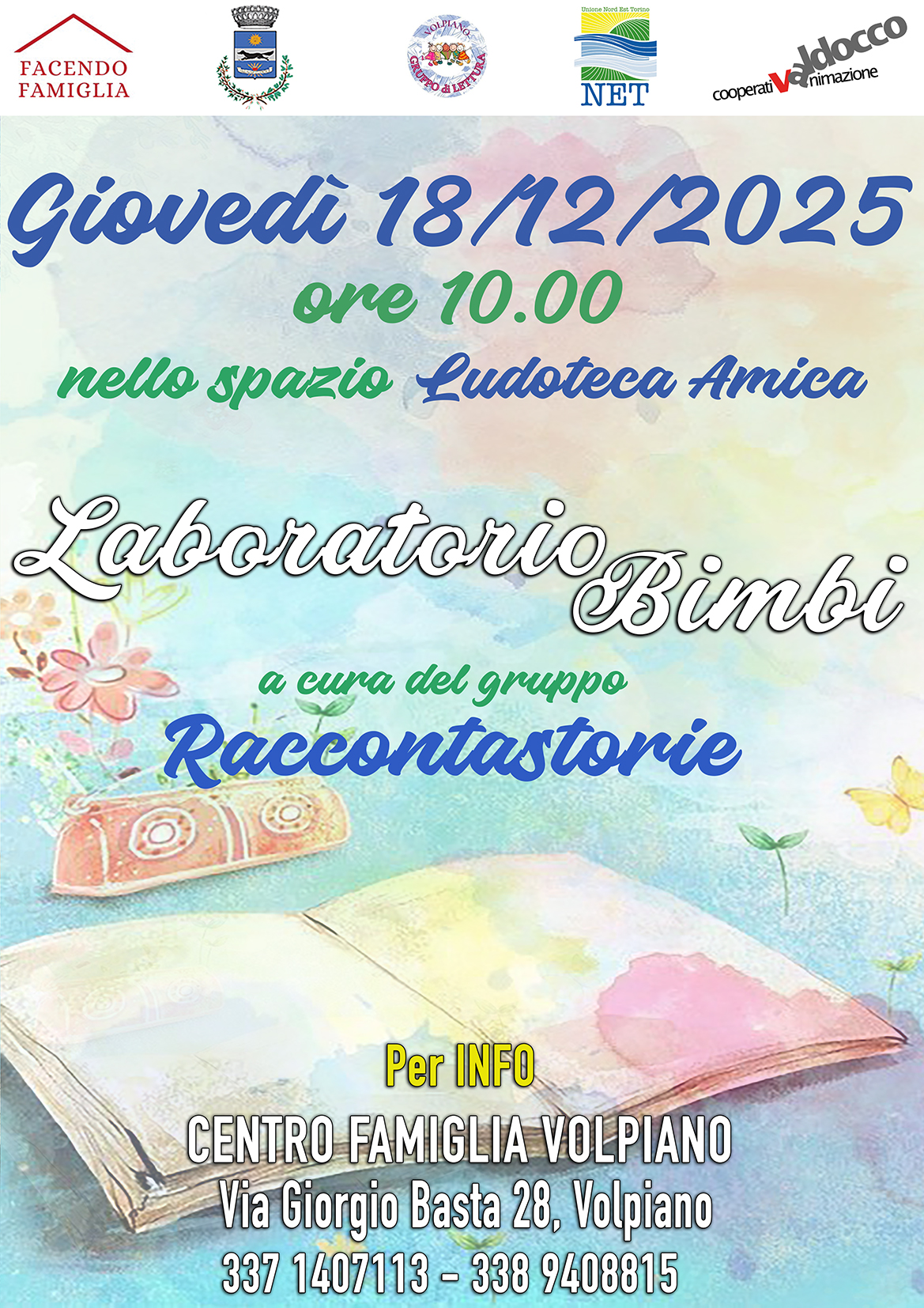 Il Centro famiglia di Volpiano insieme al gruppo Raccontastorie, propone un nuovo appuntamento dedicato ai più piccoli: un laboratorio di lettura e attività creative pensato per stimolare immaginazione, ascolto e gioco condiviso.