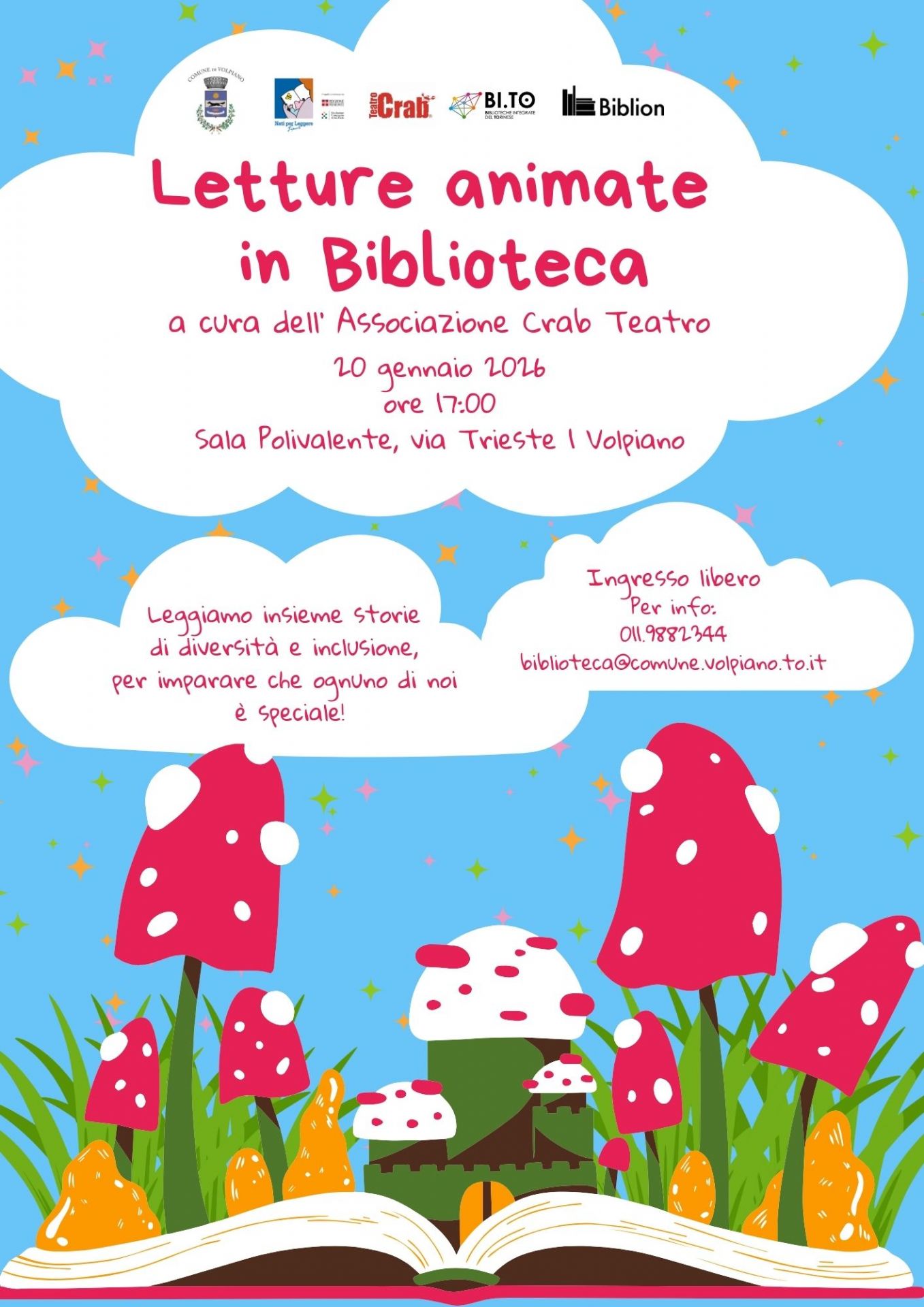 Vi aspettiamo per letture animate a cura dell’Associazione Crab Teatro, per leggere insieme racconti che parlano di diversità, accoglienza e unicità, perché ognuno di noi è speciale 💛