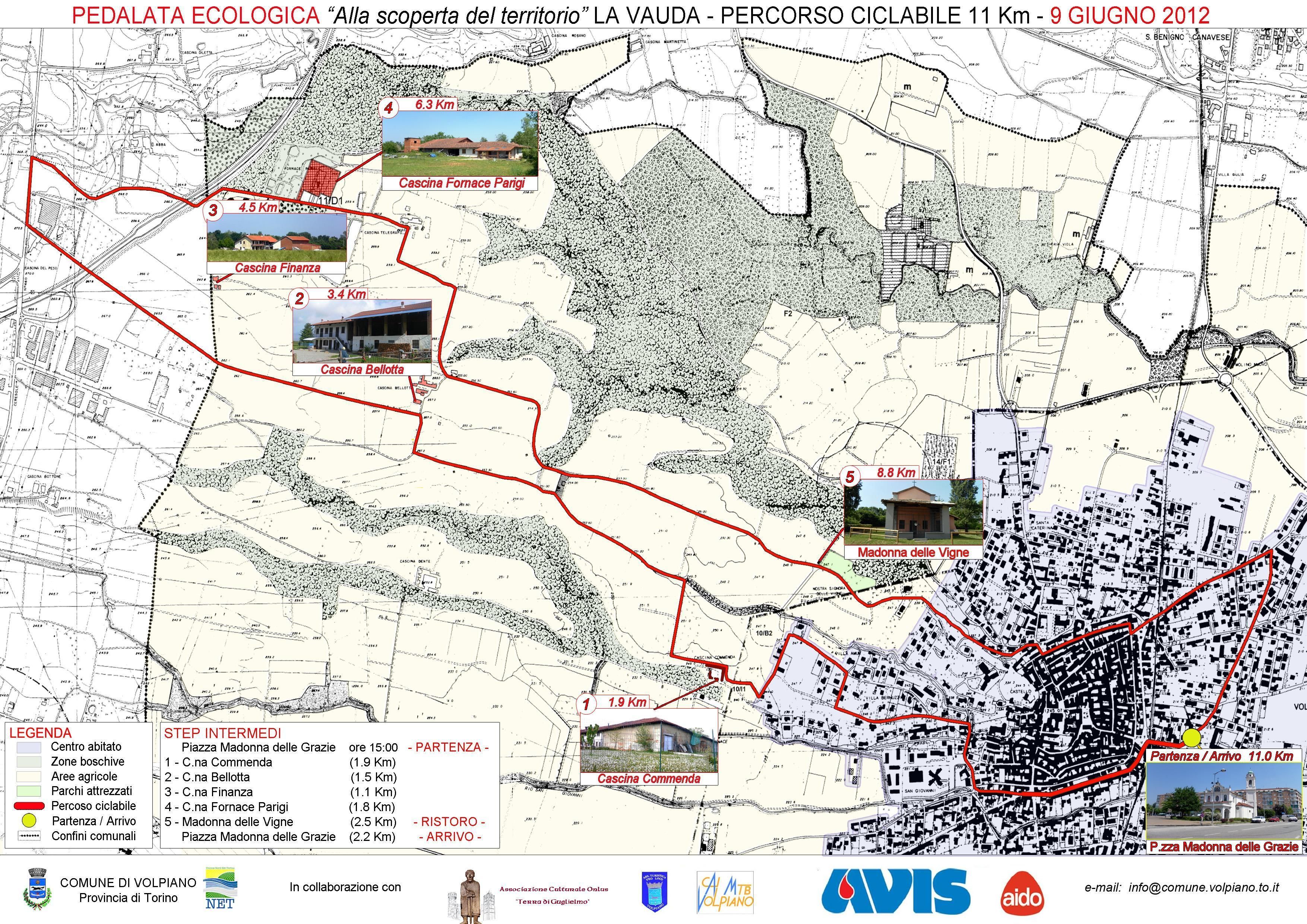 Sabato 9 giugno 2012 si svolgerà la tradizionale pedalata ecologica "alla scoperta del territorio". Ritrovo ed iscrizioni in Piazza Madonna delle Grazie alle ore 14,30 e partenza alle ore 15,00 "alla scoperta della Vauda" ed, in particolare, delle cascine Commenda, Bellotta, Finanza e Fornace Parigi. Merenda al Parco Madonna delle Vigne offerto dalle associazioni.