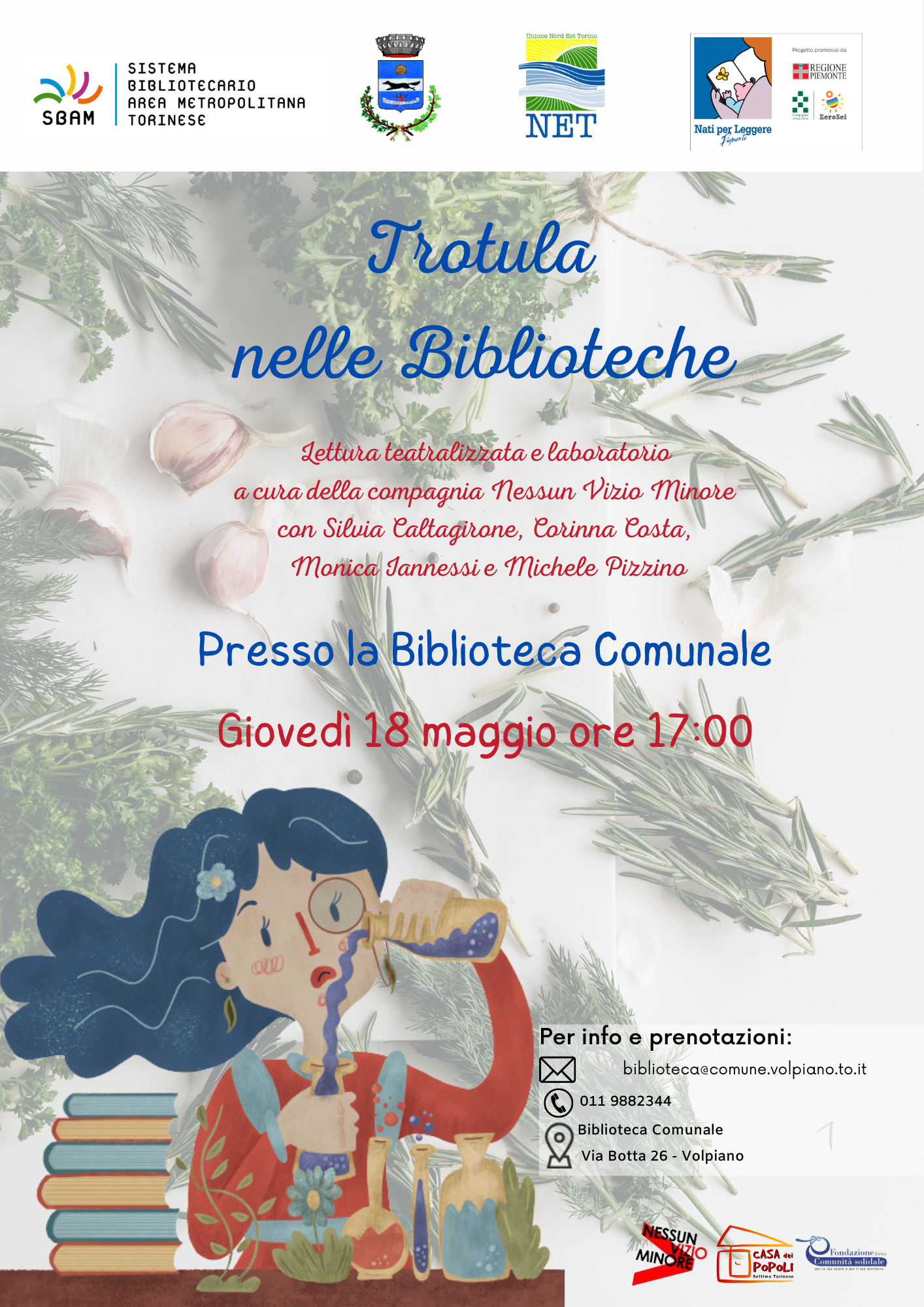 È un’iniziativa di Sbam Nord-Est (Sistema bibliotecario dell’area metropolitana torinese), Fondazione Comunità Solidale e associazione «Casa dei Popoli», patrocinata dal Comune di Volpiano e dall’Unione Net, e inserita nel programma «Nati per leggere», promosso dalla Regione Piemonte e sostenuto dalla Fondazione Compagnia di San Paolo.