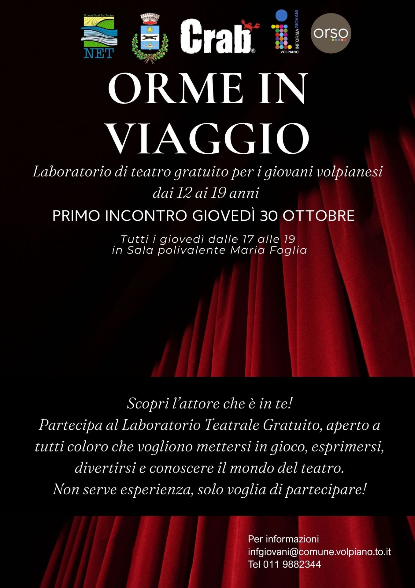 Il corso teatrale Orme in viaggio nasce all’interno delle attività promosse dal Comune, con l’obiettivo di offrire ai giovani del territorio un’opportunità di crescita culturale, espressiva e relazionale attraverso il teatro. Nel corso degli anni, il progetto si è consolidato come un punto di riferimento educativo e artistico, capace di coinvolgere nuove generazioni e di favorire la nascita di un gruppo giovanile stabile e attivo nel panorama locale.